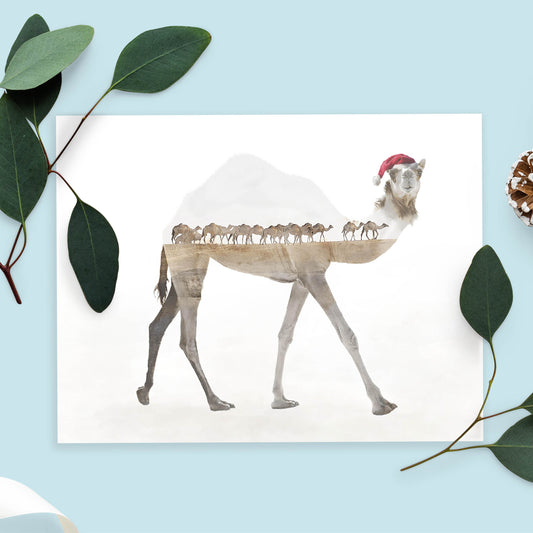 Double Exposure Camel Christmas Hat Card